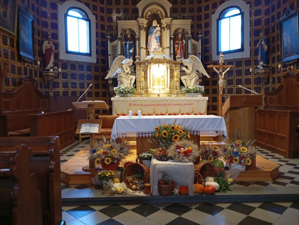 Dnešní neděli 5.10. byla sloužena děkovná mše za úrodu, při které jsem se modlili a děkovali za dobrou letošní sklizeň.